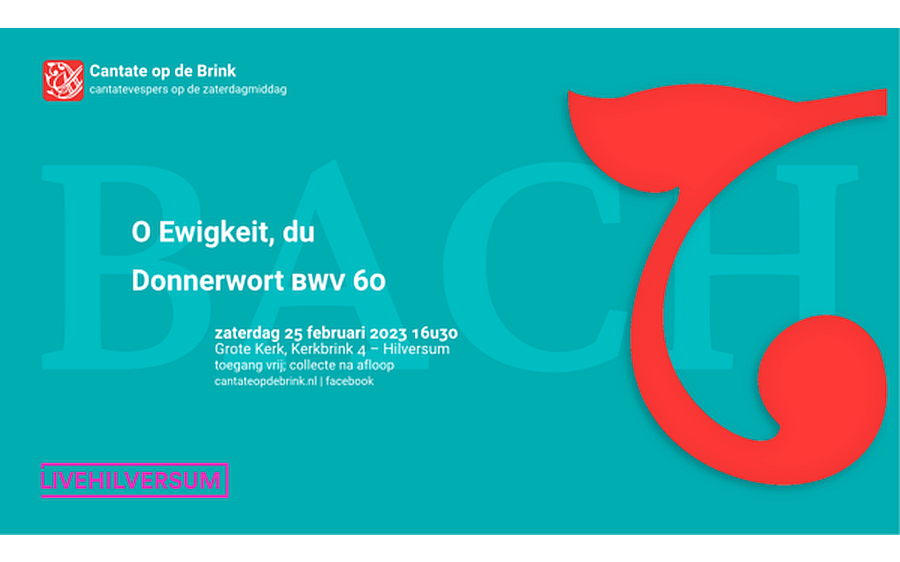 Op 25 februari 2023 klinkt in de Grote Kerk op de Kerkbrink de cantate ‘O Ewigkeit, du Donnerwort’ (BWV 60) van J.S. Bach. De litho’s die de Oostenrijkse kunstenaar Oskar Kokoschka geïnspireerd door de cantate maakte, illustreren het geheel. Een ad-hoc koor zingt het slotkoraal. Op het programma staat ook het Concert in d voor 2 hobo’s en strijkers (RV 535) van A. Vivaldi. De aanvang is om 16u30. De toegang is vrij, na afloop is een collecte. Voor meer informatie zie de website.