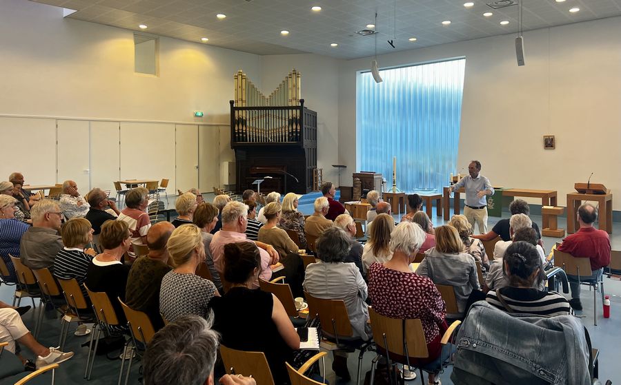 De gemeenteavond over PgH2024 was met een tachtigtal deelnemers op 8 juni in de Regenboogkerk goed bezocht. De Algemene kerkenraad nodigde leden van de PgH uit om in gesprek te gaan over vragen en opmerkingen die bij leden leven over besluiten die de kerkenraad onlangs nam over PgH2024. Voorzitter Jan de Leede zei bij de opening van de avond dat ‘de vragen en opmerkingen de besluiten verder kunnen verrijken.’