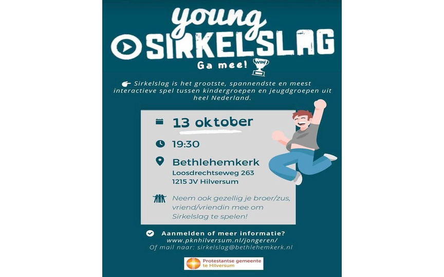 Op 13 oktober is er weer Sirkelslag. Het is het grootste en meest interactieve spel tussen kinder- en jeugdgroepen in Nederland. Je speelt Sirkelslag als groep in je eigen kerk. Je speelt tegen duizenden andere kinderen en jongeren uit andere kerken. Het gaat om creativiteit, actie en teamspirit.