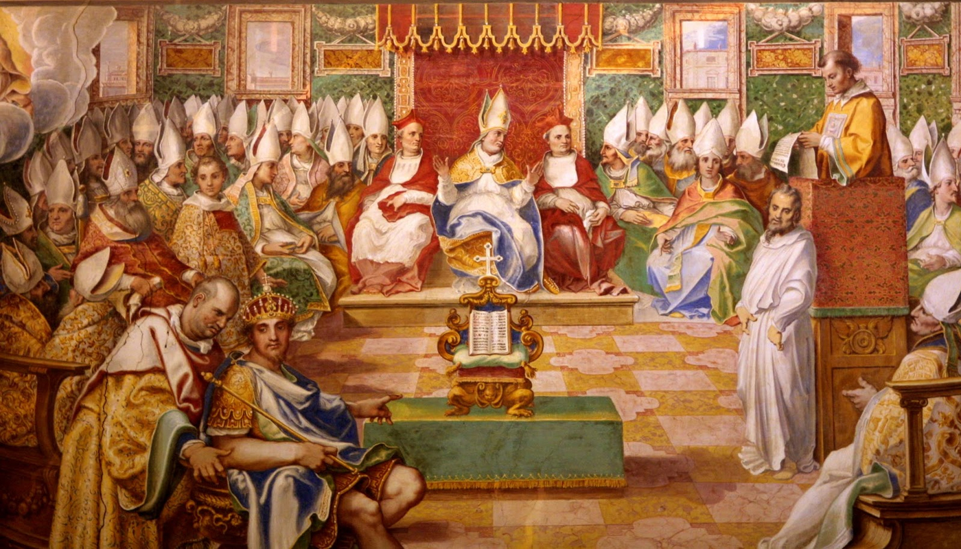 Afbeelding ‘Concilie van Nicea’, fresco in Salone Sistino van het Vaticaan. Schilders Giovanni Guerra (1544-1618) en Cesare Nebbia (1534-1614).