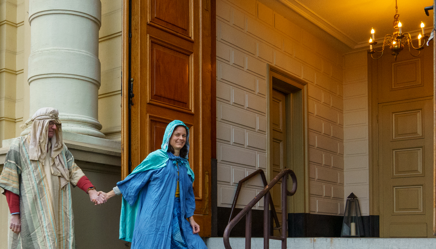 “Na meer dan 2000 jaar komen de figuren uit de kerststal voor een reünie naar Hilversum. De herders, de engelen, Jozef en Maria hebben allemaal een uitnodiging gehad. Ontmoet ze op het plein en in de vieringen. Kom luisteren naar de verhalen, zing mee met kerstliederen en kom erachter wat bouwen met kerst te maken heeft. Neem ook een kijkje in onze nieuwe kerststal en verkleed je als stalfiguur”.