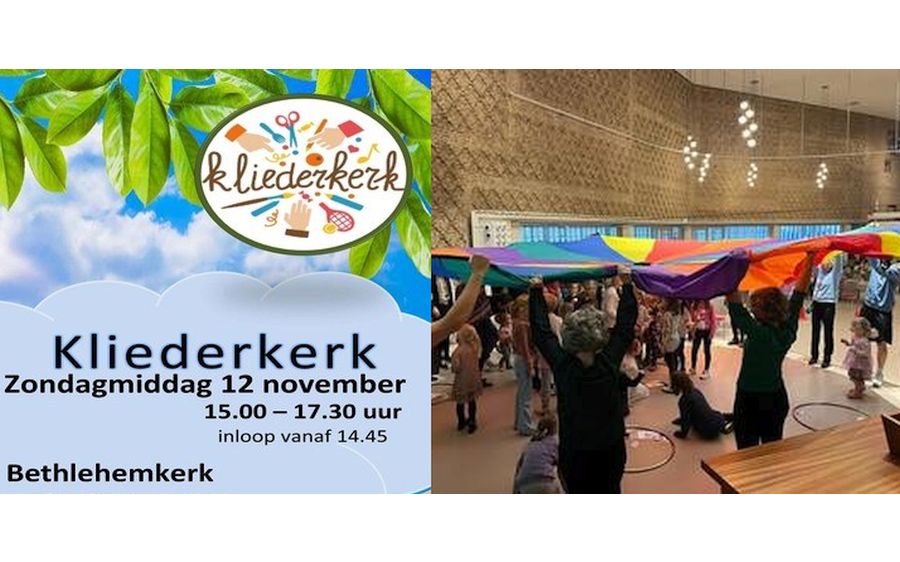 Het Kliederkerkteam bericht: ‘Ook wij, 37 kinderen met veel (groot)ouders en vrijwilligers, waren in de Kliederkerk bezig met het klimaat. Met zachte wereldbol-ballen hebben we gezellig kennisgemaakt met elkaar. Het was een rommeltje in de kerk, overal lag afval. Gelukkig hebben de kinderen geweldig geholpen met het opruimen. Het afval werd keurig in de verschillende afvalbakken gegooid. Zo konden we op het schone liturgisch centrum horen over de zeven scheppingsdagen.