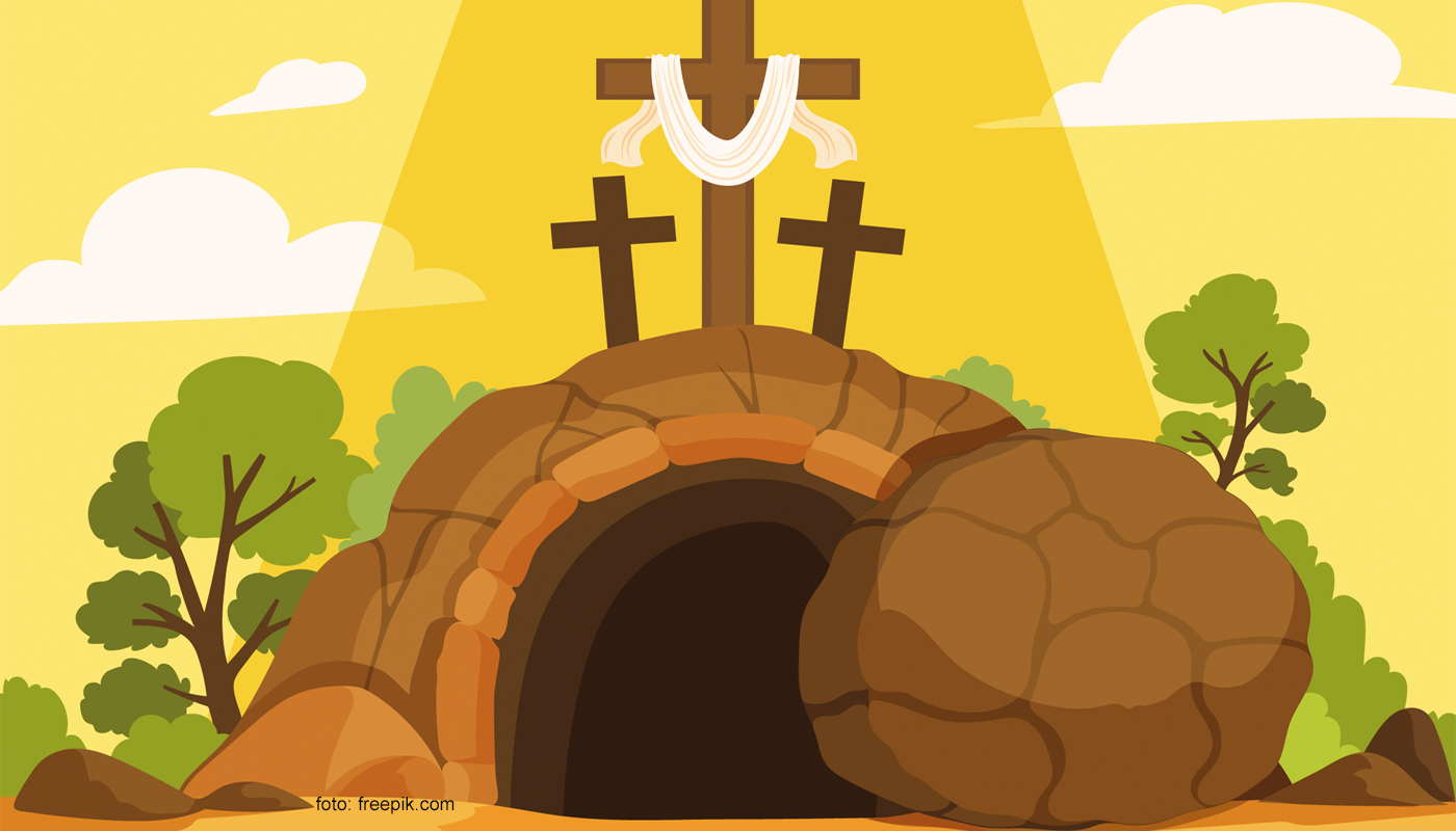 Wij gedenken dat Jezus is herrezen uit de dood. Het graf is leeg. De Heer is waarlijk opgestaan!